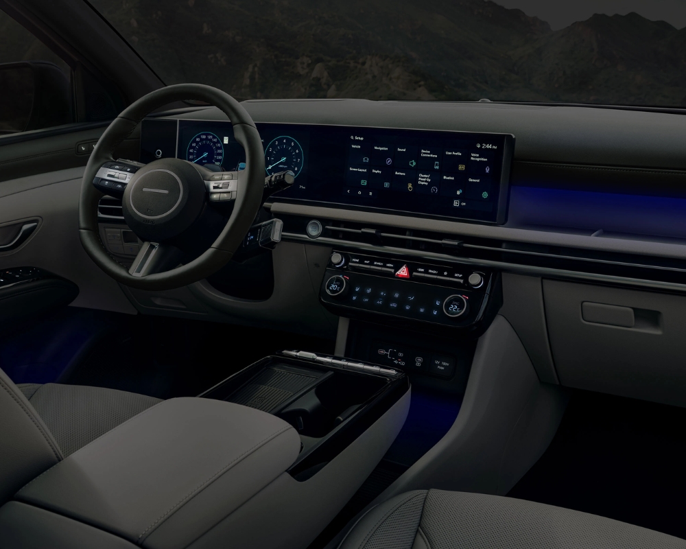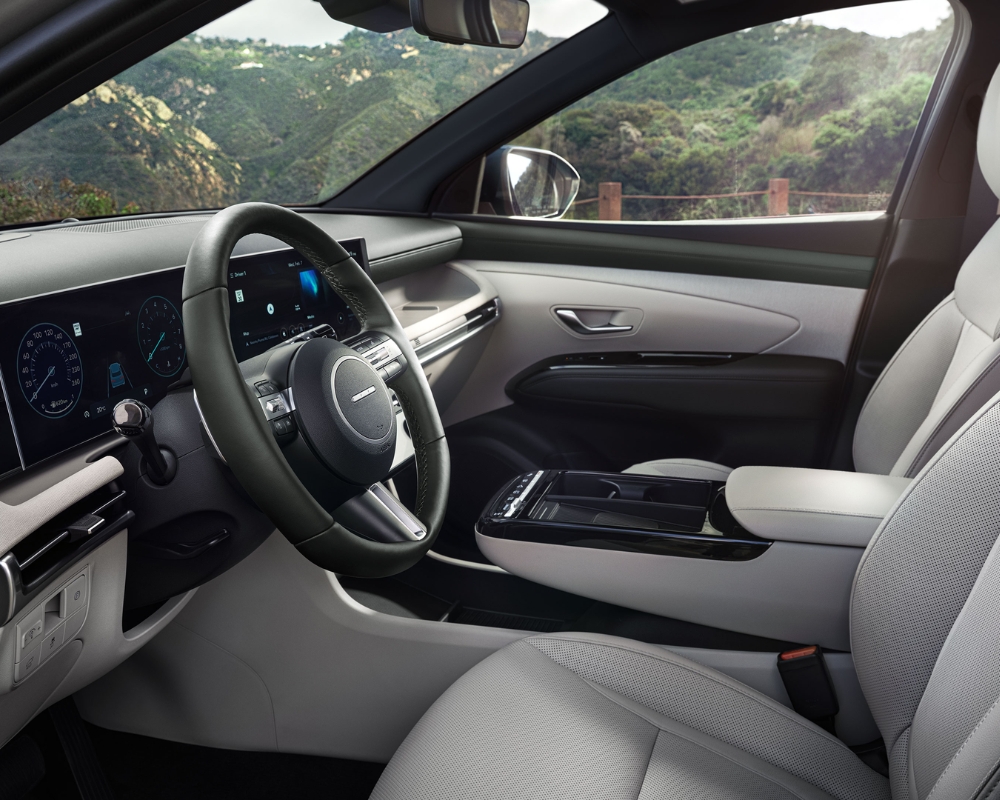 Every part of the Tucson Hybrid is designed with comfort in mind. Dual-zone climate control keeps everyone happy, and available heated seats and steering wheel make winter mornings feel a little better. The cabin stays quiet even when the weather outside is rough, so every drive feels peaceful. The available panoramic sunroof brings in extra light, making the interior bright and open even on cloudy days.